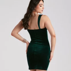 Enchant with a glitter dress that brings out your inner glow, babe! The dress features a sleeveless wrap V-neckline, spaghetti straps, ruching, and an asymmetrical hem. The dress is composed of a glitter knit fabric that offers a form hugging fit with a moderate stretch. Complete look with