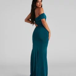 Wrap yourself in an elegant formal dress that captivates! Adora features a one-shoulder neckline, ruching throughout, a high side slit, and a wrap-styled silhouette. The dress is composed of a smooth knit fabric that offers a form-hugging fit with a moderate stretch. Complete look with rhinestone heels and a