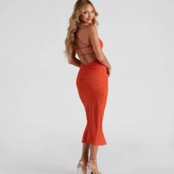 - Spaghetti straps, lattice-back design