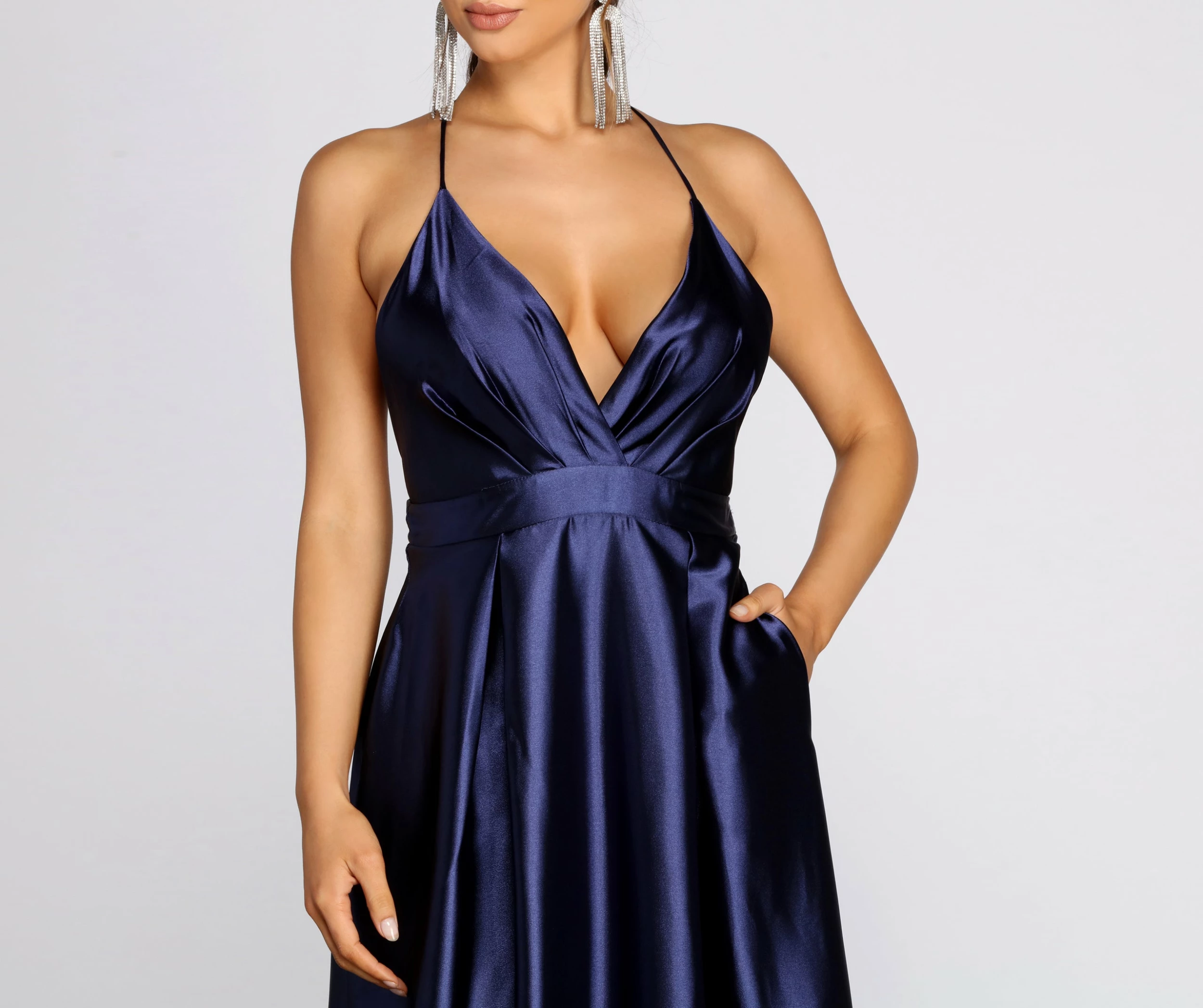 - Plunging V Neckline With Subtle Pleating Details At The Bust