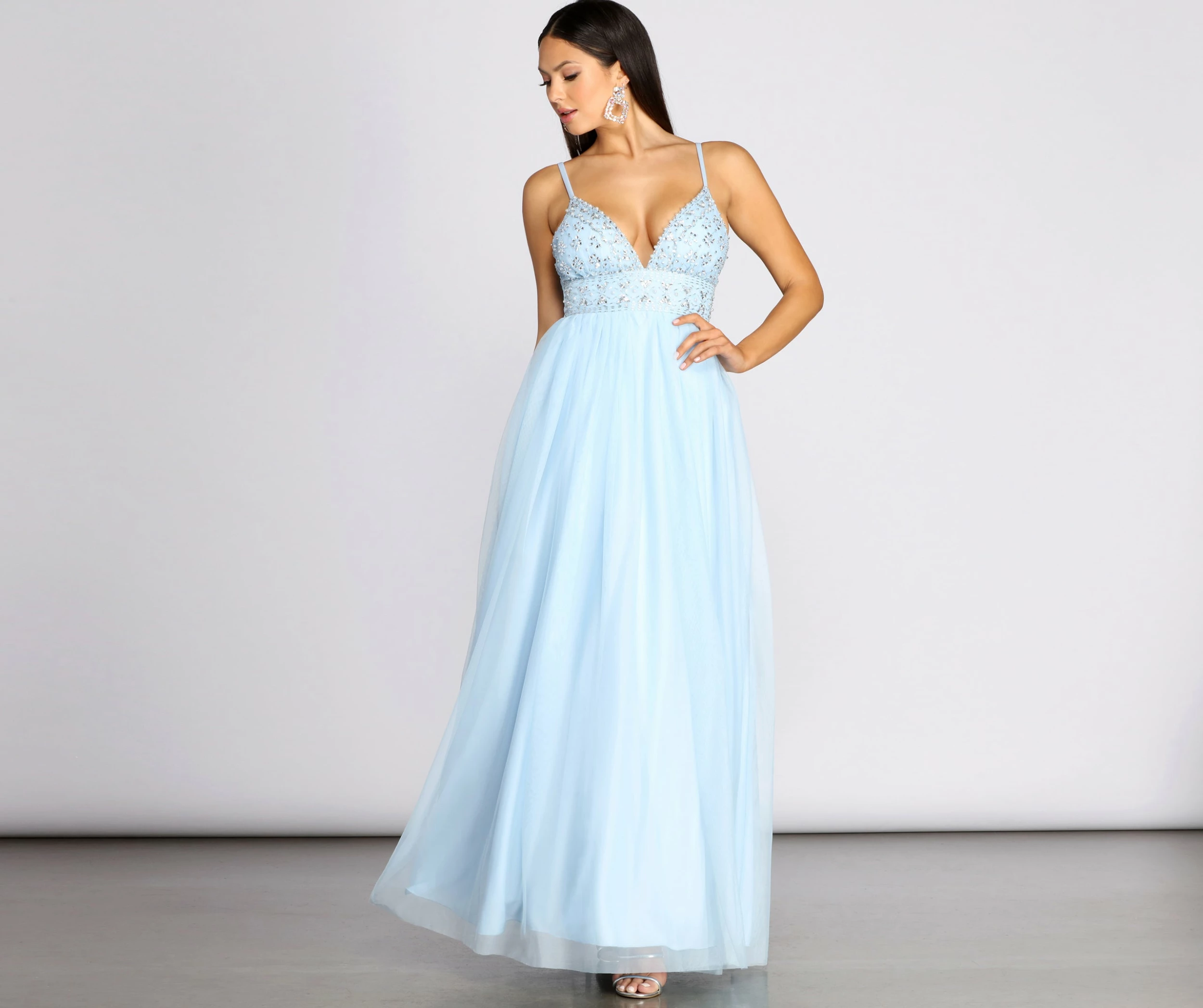 Coco brings the glam and elegance with her hand-beaded detailing and airy tulle fit for a princess! Adorn her with glitter pumps and sparkling rhinestones to create a breath-taking look!