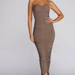 Enchant the room instantly in this gorgeous floor-length gown! Ella features a stunning sleeveless cowl neck, flattering high slit, and sleek spaghetti straps. She is composed of a lined satin stretch fabric that offers a form-hugging fit with a moderate stretch. Wear with
