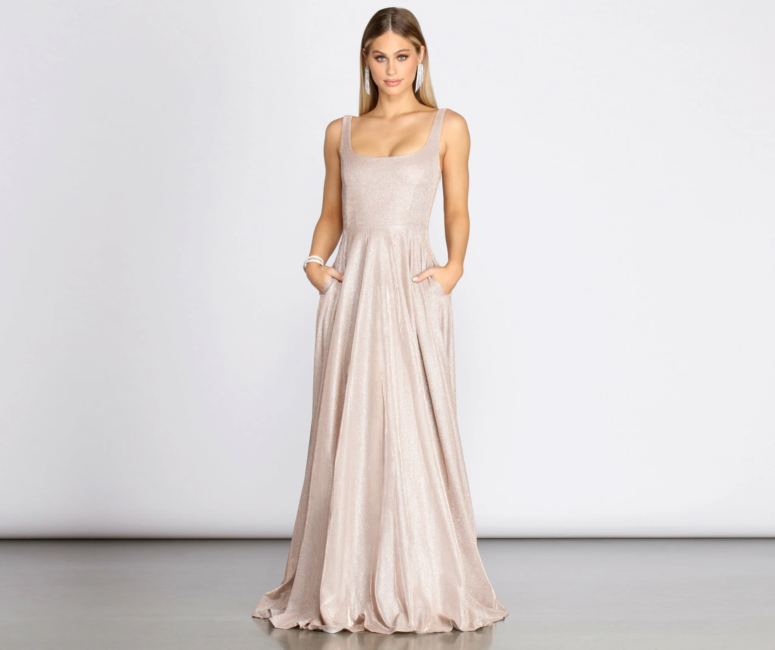 Create a moment that will take their breath away from the time you enter the room in our unforgettable Emery formal glitter dress! Pair with dainty accessories to elevate your evening!