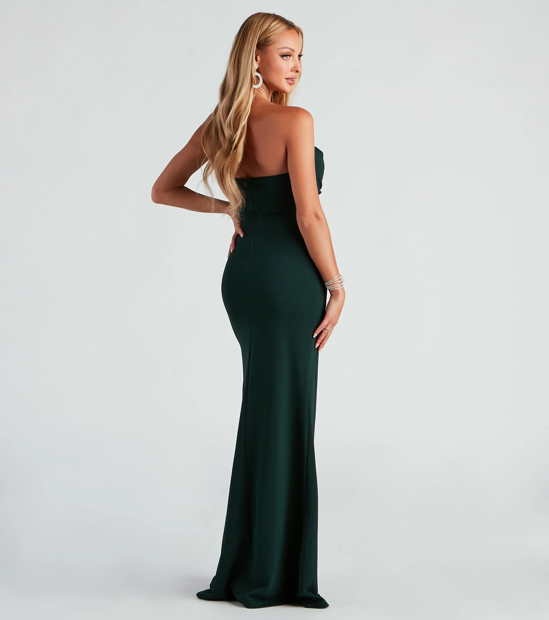 - Strapless neckline