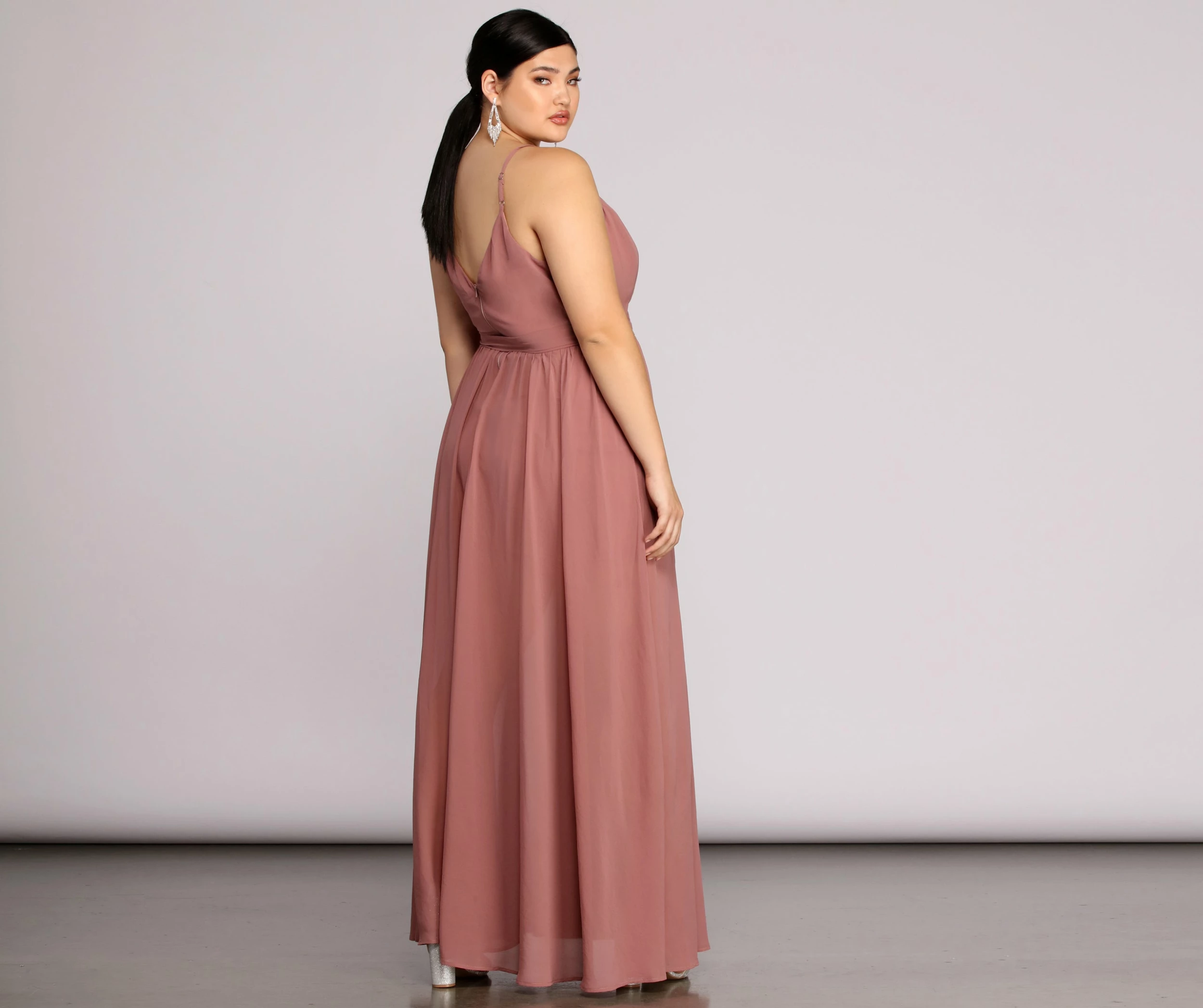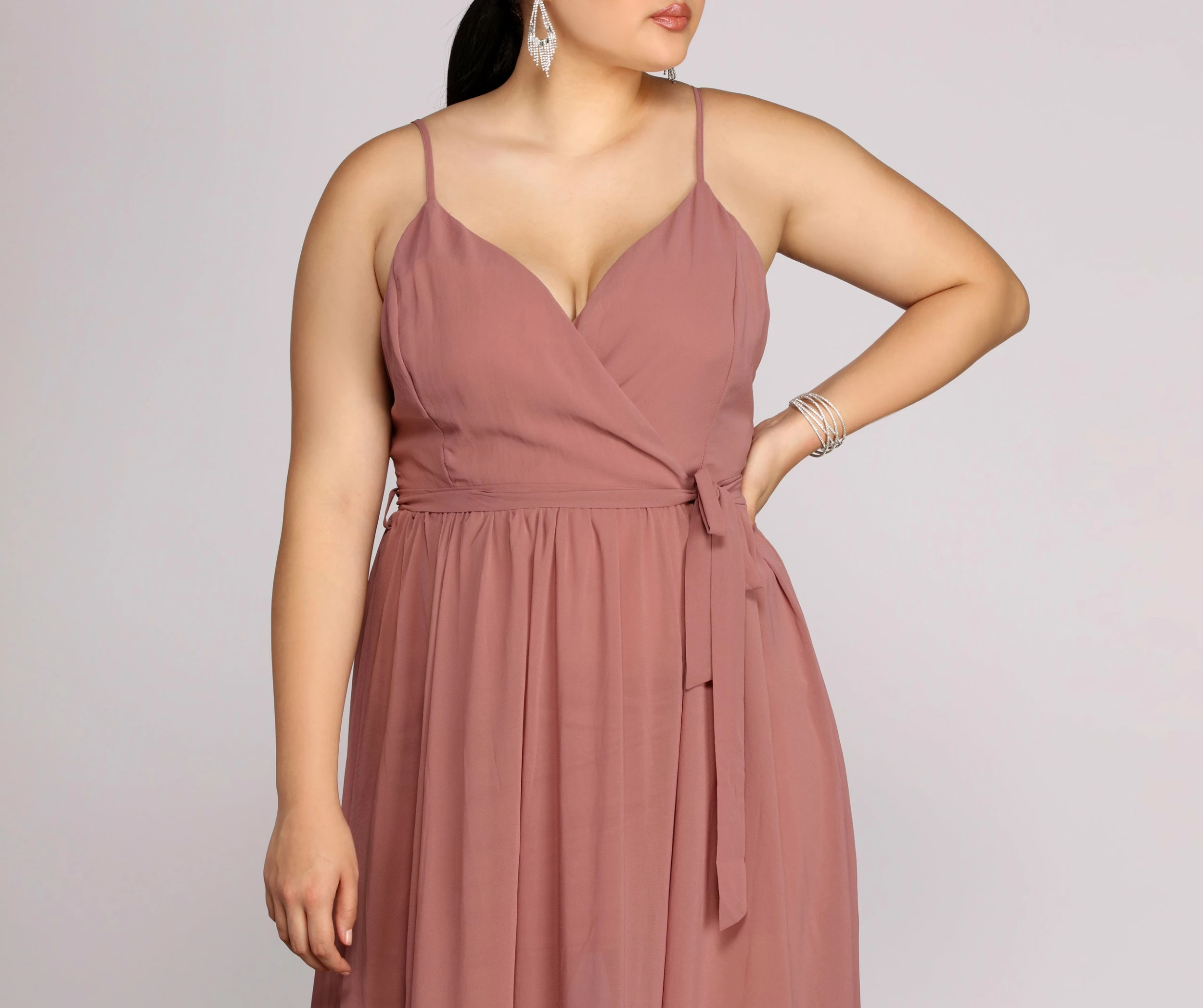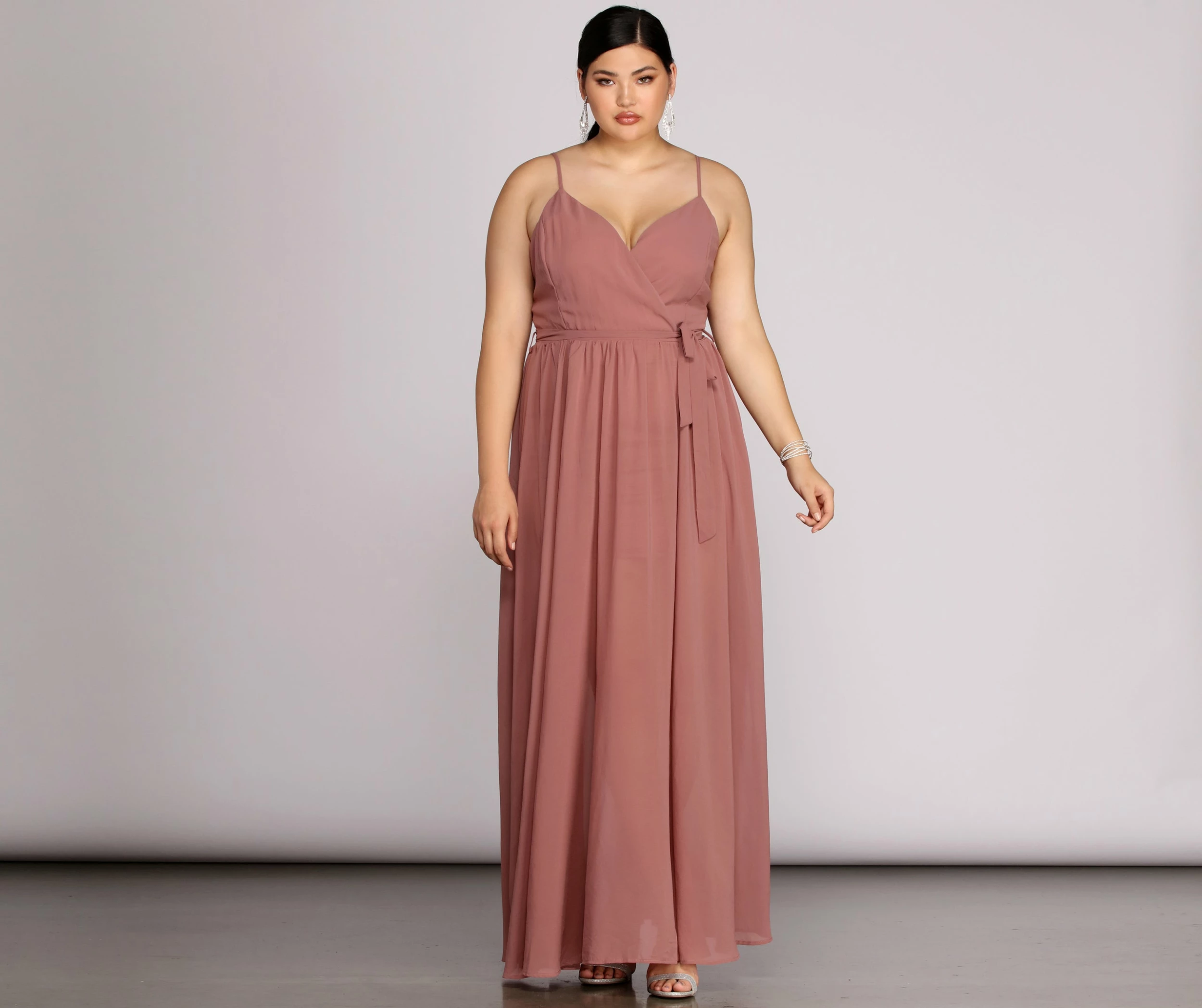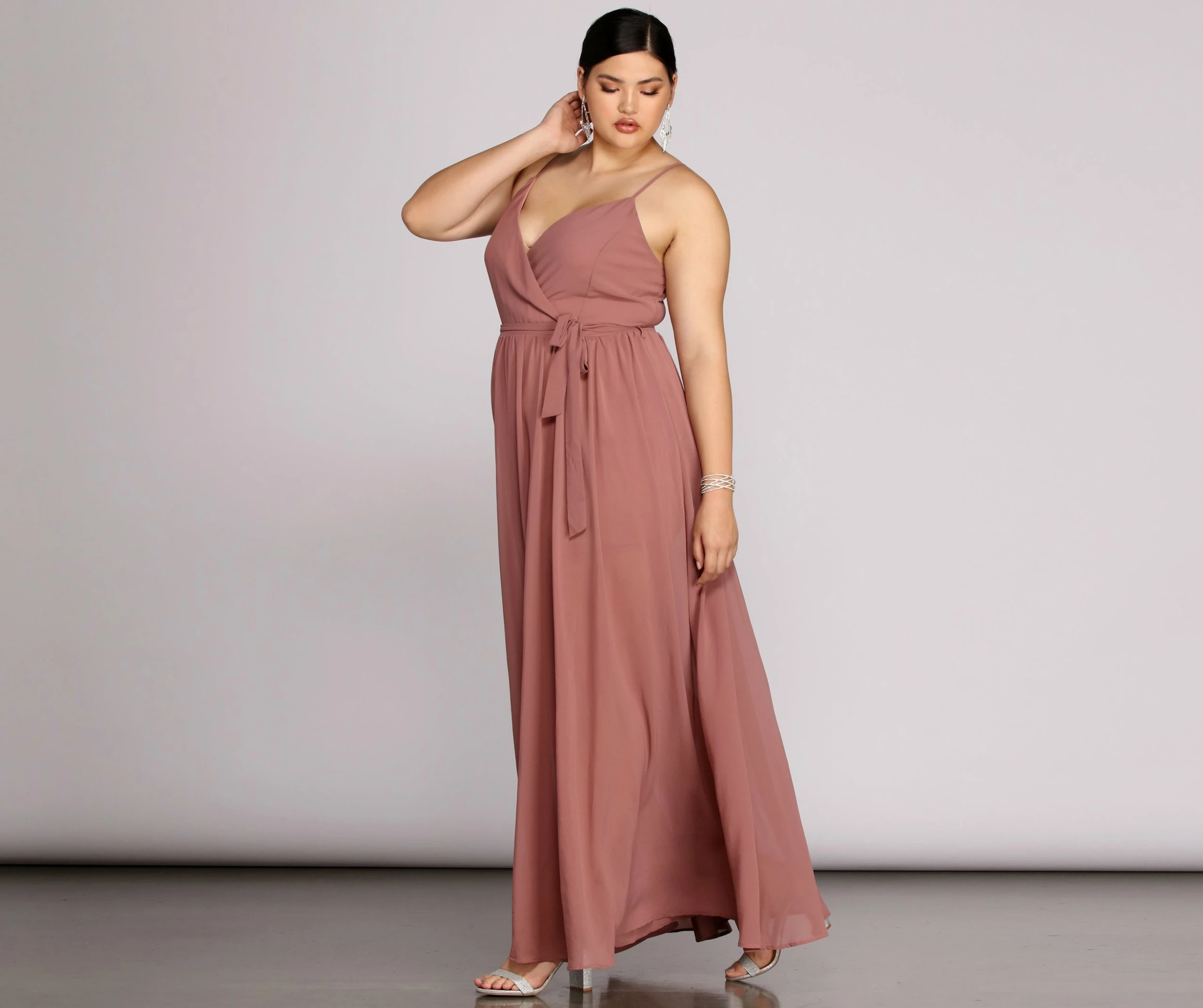 Keep it simply gorgeous in the effortlessly charming Helena dress! She features a sleeveless bodice, a plunging wrap V neckline and adjustable narrow straps. Her relaxed fit bodice leads to a flowing partially sheer floor length silhouette that is accented with a tie waist belt. She features a gorgeous floral print. Dress is composed of an airy chiffon fabric that offers a relaxed fit with minimal stretch. Includes an additional mini skirt length knit lining and back zipper closure.