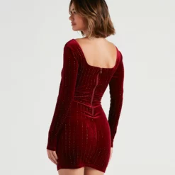 Your inner pop princess will awaken when you slip into the Raelynn formal dress covered in head-to-toe rhinestone embellishments! Perfect for prom, red carpet events, and black tie galas. She features fitted sheer long sleeves, shoulder pads for a structured style, a sweetheart neckline, an underwire padded bust and an open back with a hook strap, and a form-hugging slim silhouette with a back slit accent and long hem. The formal dress is composed of a mesh fabric with a gorgeous rhinestone pattern and a stretchy knit lining. Complete the look with a statement