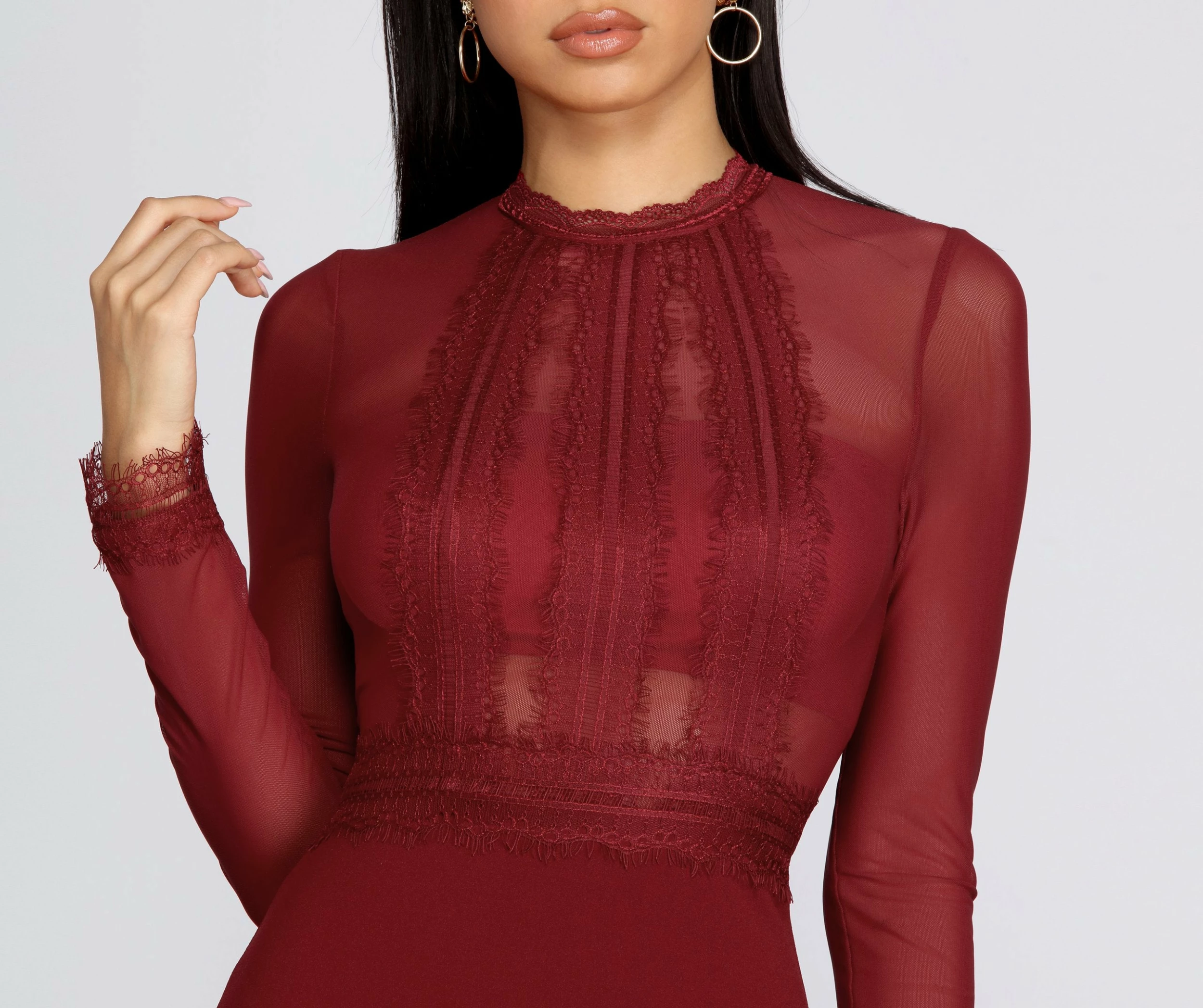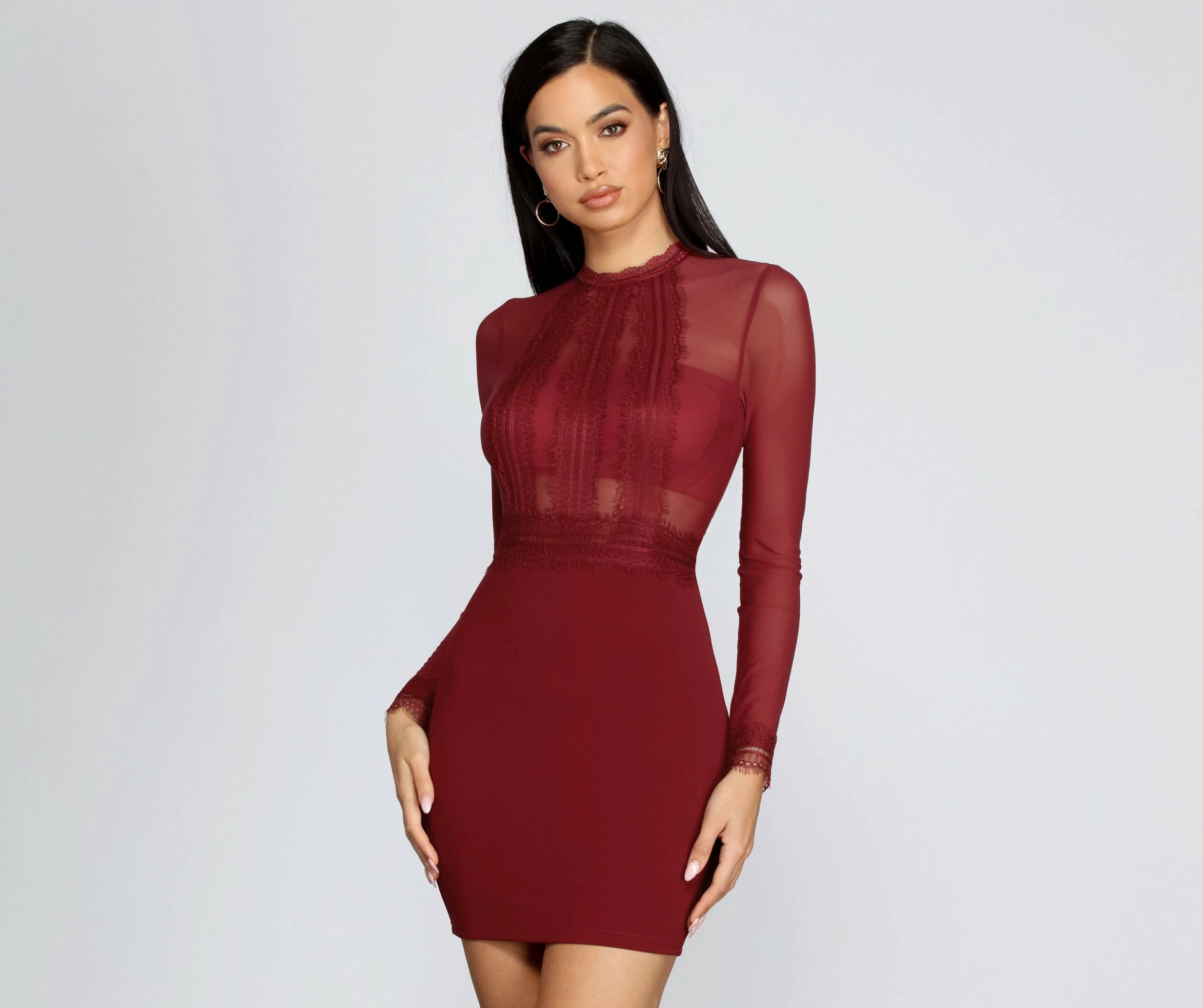 She’s looking too fly in the club tonight, y’all! This bodycon dress features mesh sleeves, a crew neckline, and a bralette-style bodice. It has a fixed waist and a bodycon ponte skirt with moderate stretch. Pair with your favorite iced-out heels for a star-striking vibe.